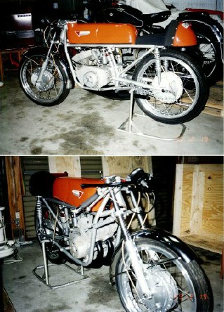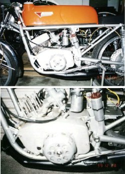 Mr. Oouchi started the restoration earnestly in 2000/May. The person in charge of it was Mr. Tomizuka. He is a master of classic 2 cycle twin. He have restored many Yamaha TD-1. They brought the bike in the studio of Mr. Tomizuka. He will make the footrest. Also he will restore the engine.